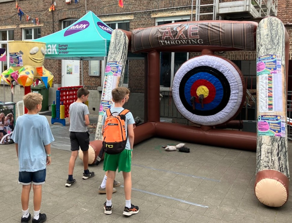 Vandaag konden we onszelf langs onze beste kant laten zien op het schoolfeest te Weerde. We rukten uit met onze Mikado, 4-op-en-rij en ons velcro hamerslinger spel. Ouders en grootouders kregen reclame van de Zomerfeesten en enkele het volledige programma van Raak Weerde.